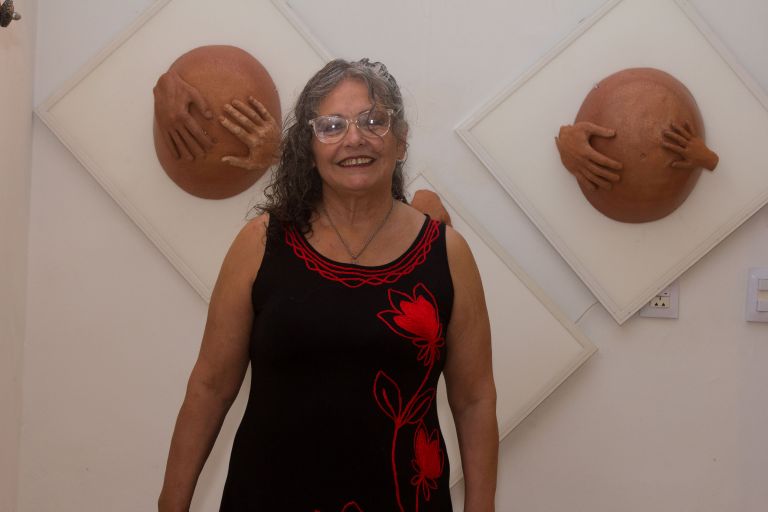 “Dependiendo de la convocatoria adecúo mi obra. En este momento no pretendo mostrar grandes cosas ni mostrar lo lindo, sino mostrar lo que llevo adentro, lo que siento, lo que soy. Muchas de mis obras tienen el acervo cultural pampeano, pero en esto me tiene a mí como mujer”, señaló Fiorucci, quien agradeció el acompañamiento de la Casa de La Pampa.